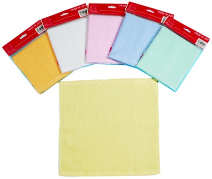 Description: Convenient size face towels come in an assortment of colors.