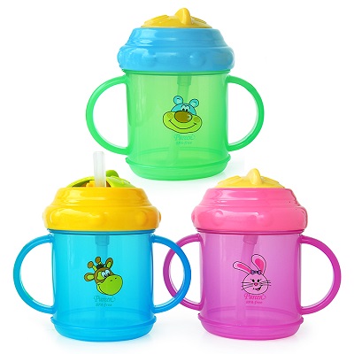 With handle to train the baby to hold the cup independently.