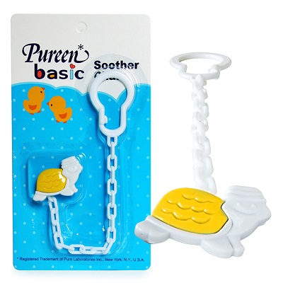 Pureen Pacifier Chain is made of high quality non-toxic materials. It is safe and hygiene for use on babies, comes with colourful badge clip. The pin safety latch prevents the infant from accidentally releasing it and hurting himself. It is also available in attractive animal designs.